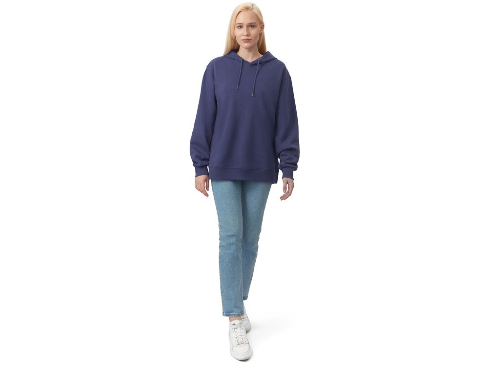 Купить Толстовка с капюшоном оверсайз «Lisbon» унисекс, темно-синий, с нанесением логотипа компании, индивидуального изображения или гравировкой,
