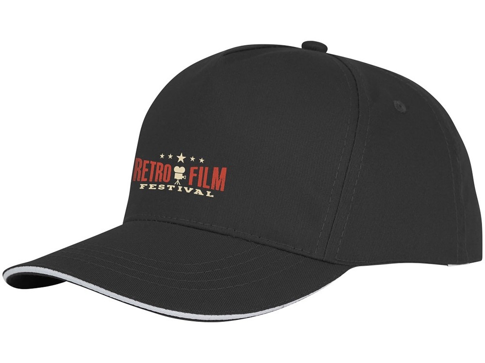 Купить Пятипанельная кепка-сендвич Ceto, черный, с нанесением логотипа компании, индивидуального изображения или гравировкой,