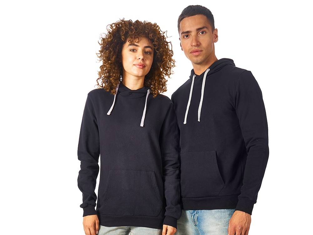 Купить Толстовка унисекс "Stream" с капюшоном, черный, с нанесением логотипа компании, индивидуального изображения или гравировкой,